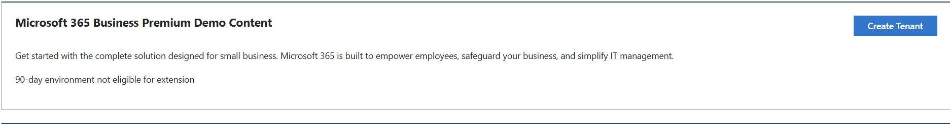 5. Once you’ve selected the content pack you want to deploy, click “Create Tenant”, accept the terms of use and your tenant will then be built.