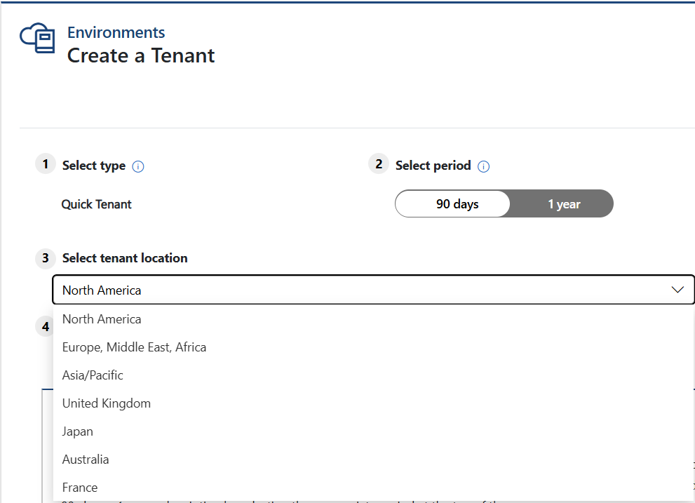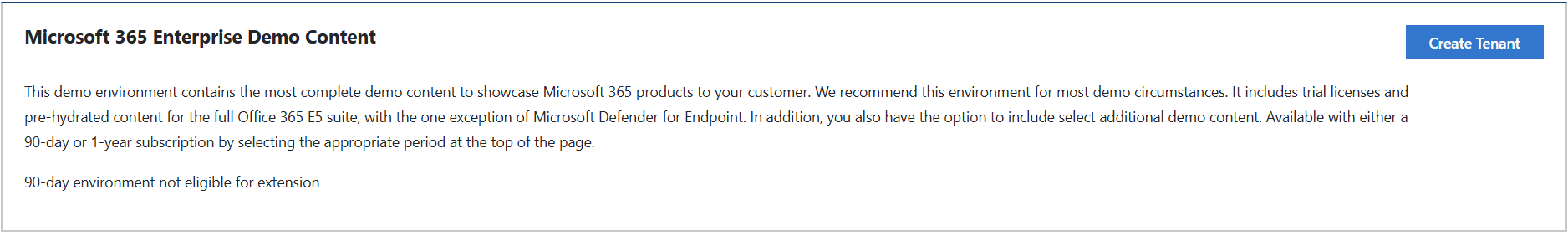 4. Next, you’ll have to chose a content pack, For Australia, EMEA and UK regions the only option we have is the Microsoft 365 Enterprise Demo Content. Which is comprised of an E5 License.